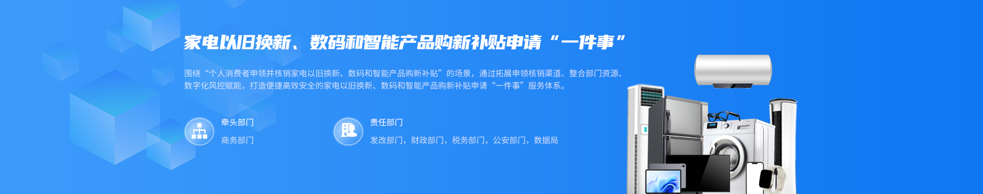 | 2 | 家电以旧换新、数码和智能产品购新补贴资格校验 | 商务部门 |
